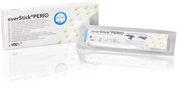 everStickPERIO besteht aus parallel verlaufenden Glasfasern, die in eine Gelmatrix aus Polymer und Harz eingebettet sind. Die Matrix hat die Funktion, die Faserstruktur im Strang zusammenzuhalten, was den Arbeitskomfort des Materials deutlich erhöht. Diese Konstruktion und Zusammensetzung von everStickPERIO machen es flexibel und klebrig, was ein einfaches und präzises Aufkleben der Fasern auf die Zahnoberfläche ermöglicht.