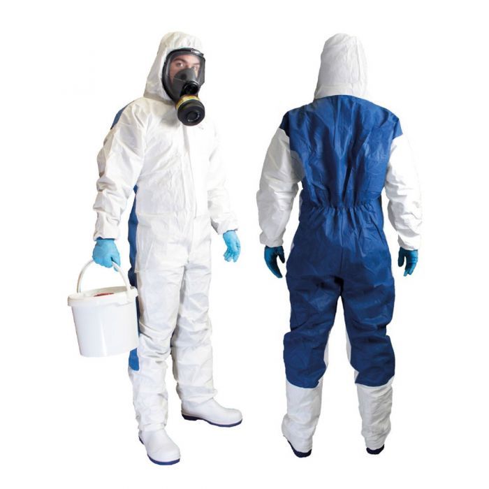 XL antistatic laminate coverall with SMS back panel.