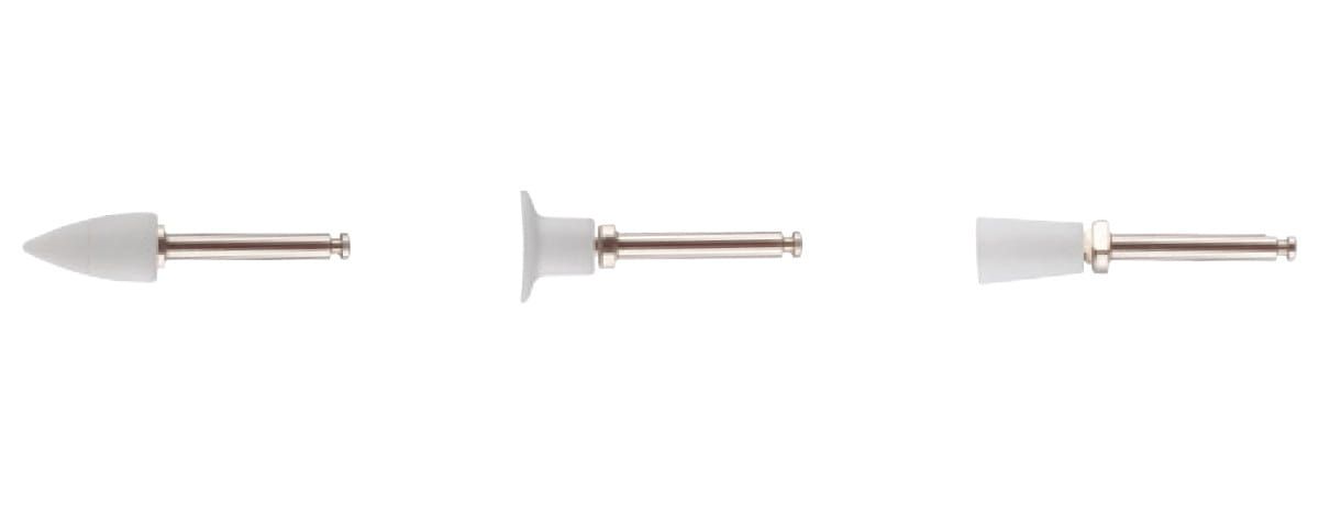 Silicone erasers for composites, glass ionomers and amalgams offering a shortened clinical algorithm during preparation and polishing.