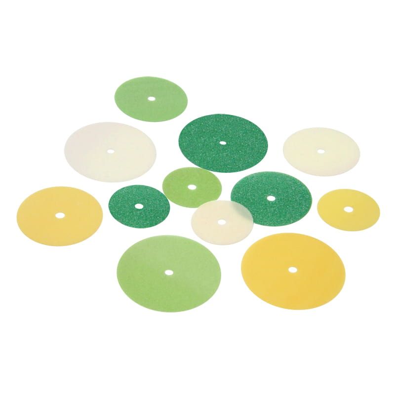 , farebne odlíšené, sa používajú na dokončovacie a leštiace práce na kompozitoch. Na použitie