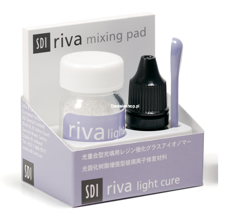 dentínu, uvoľňuje fluorid, vyznačuje sa vysokou odolnosťou proti drveniu a krátkym časom tuhnutia. Riva Light Cure má široké využitie ako výplňový materiál.